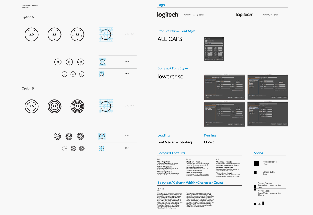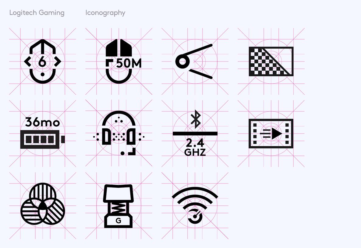 Working on projects for both print and digital platforms, I worked closely with packaging designers and UX designers to build an icon library to be used for user interface and packaging. Following a 32 pixels by 32 pixels grid, each icon needed to work individually and collectively to deliver a consistent visual style for Logitech.