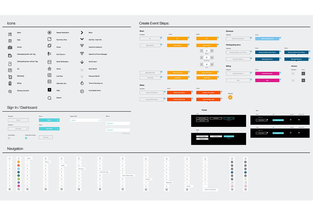 While I was working at a branding agency in San Francisco, I was assigned to create an interface for a management tool used by large scale supermarkets, such as Safeway, Ralphs, CVS, etc. This tool allowed users to create, tracks, and manage in-store sale tags. As the visual designer, I was responsible for creating the UI and the visual design of the digital application.